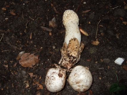 ところでこのキノコ、ドイツ語だとStinkmorchelだと思うんだけど日本名が分からないのよ。誰か教えてちょうだい。この下の丸いボール状のものは幼菌らしくてフランスでは食用って聞いたわよ。それにしても形が卑猥すぎるわよね。どうしてここまで似せてしまったのか、自然には不思議がいっぱいね~。このキノコと動物と、どっちが先に地球に発生したのかしらねぇ。こういうことは考え始めると頭がぐるぐるしてくるからあんまり考えちゃダメよ。